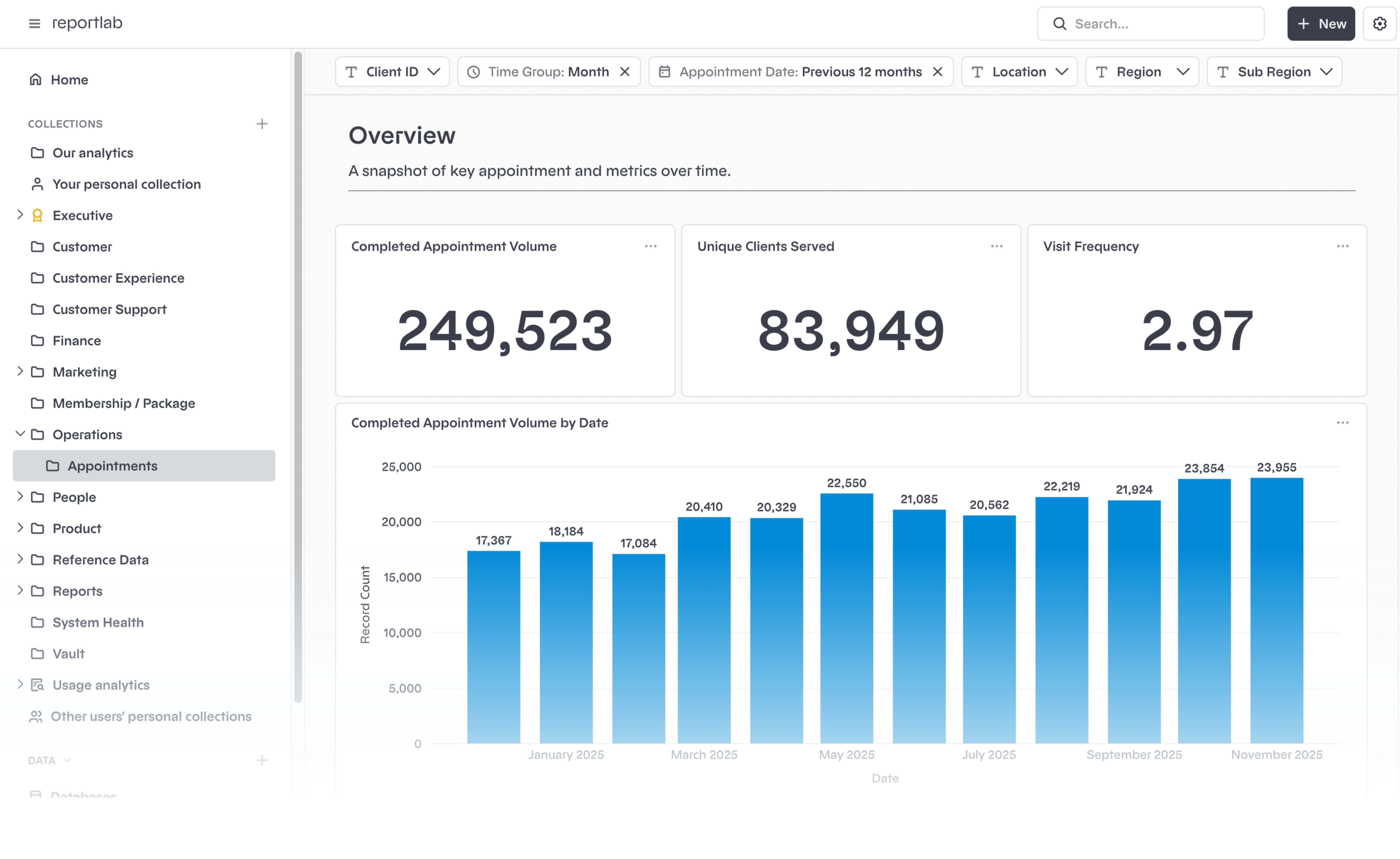 Scheduling, filters, drill-down, export, and more